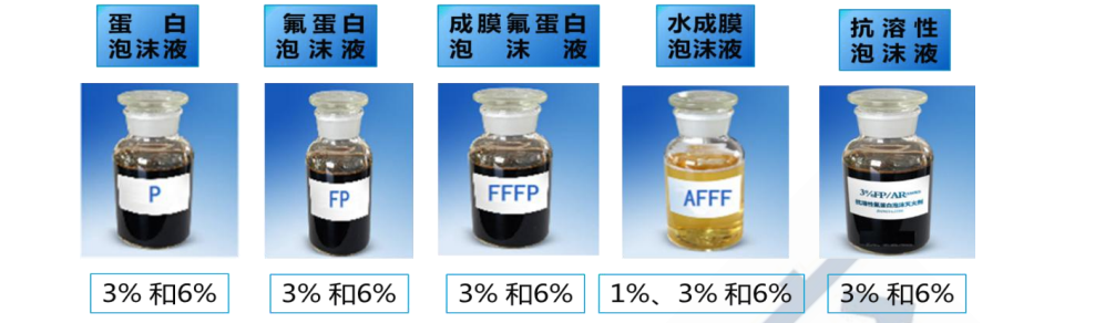 1、當采用吸氣性泡沫產生裝置時,可選用3%型氟蛋白、水成膜泡沫液;